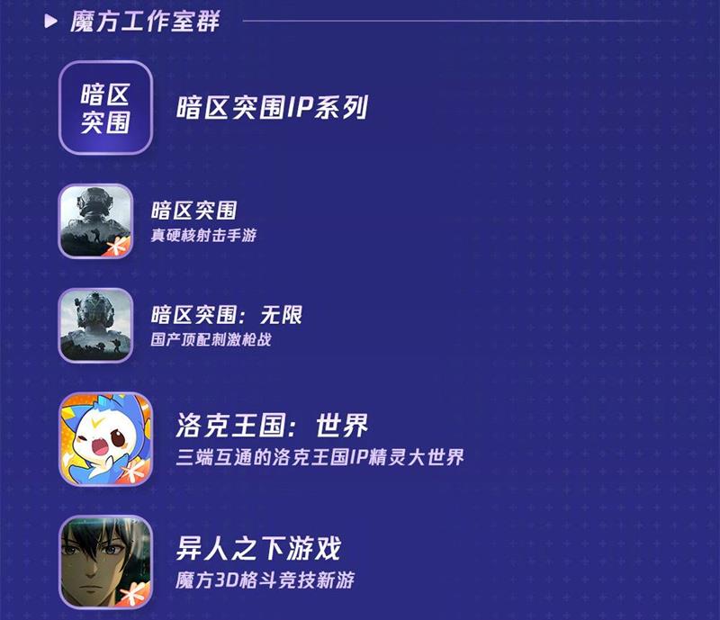 魔方工作室群则推出暗区突围IP系列,暗区突围定位真硬核射击手游,而暗区突围:无限更是国产顶配刺激枪战佳作。此外,洛克王国:世界构建三端互通的精灵大世界,异人之下游戏作为魔方3D格斗竞技新游,也将为玩家带来别样体验。