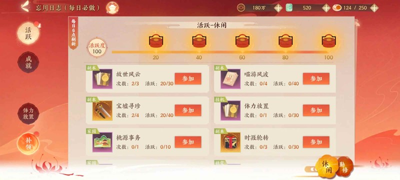 如果当日的雅舍悬赏都是清体力任务,那么当天的每日必做就差不多做完了,清体力的时候记得开左上角的加成