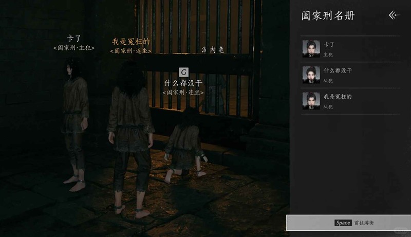 连坐入狱后,主犯和从犯玩家可以开启连坐游街,一起接受百姓群众的劝诫和教诲,真心悔过,减少关押时间。