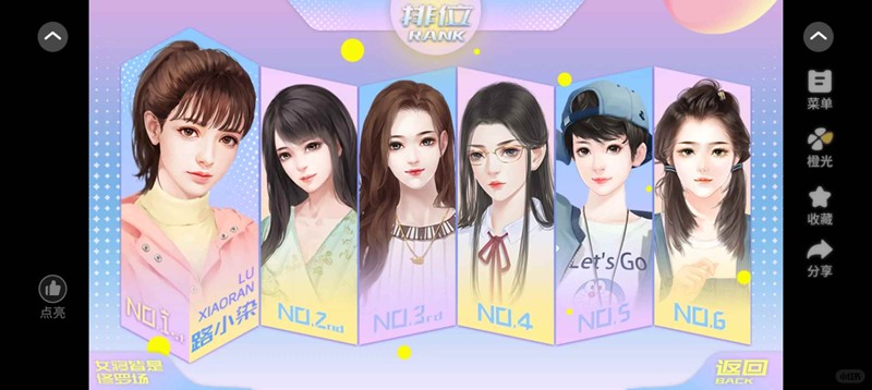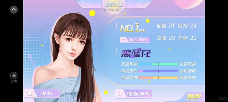 大体总结想要排名第一就是尽量顺着室友来,不diss任何人,撕逼全要撕(记得存档),男主线最好全都开着,小心不要被删和不要让吴昊死掉,然后商城免费送的万能点数全用来加属性(优先+能力),商场买免费金币,去换装买蓝色一字裙和随便一个头发,冷铭邀请去k晚会就去会加属性(想走冷铭线HE别去 养狗选要遛狗)