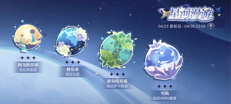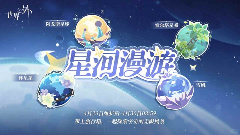 4月23日更新后-4月30日03:59,特别活动「星际漫游」限时开启。带上旅行箱,一起探索宇宙的无限风景!
