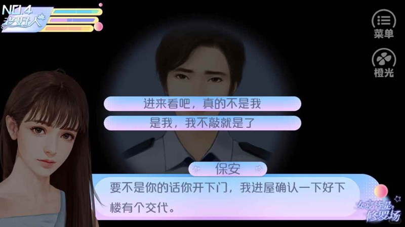 独居的时候某天晚上会有保安来敲你门,说你吵到楼下住户来查明情况,选择【是我 我不敲就是了】这里无论如何都不能开门,否则会被杀害。