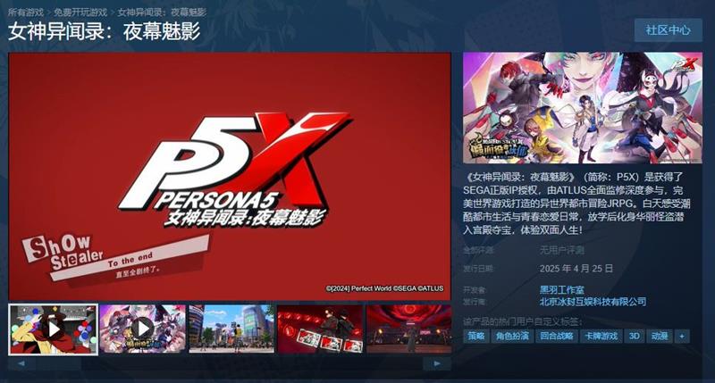 《女神异闻录:夜幕魅影》(P5X)即将登陆Steam平台,为玩家带来全新的游戏体验。这款备受瞩目的作品由SEGA授权,完美世界开发,自2024年4月12日公测以来,一直受到玩家群体的广泛关注。如今,它即将在4月25日正式上线Steam平台,为更多玩家提供便捷的游玩渠道。
