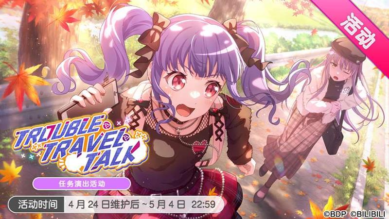 “TROUBLE・TRAVEL・TALK”任务演出活动正式开启,活动时间将持续至5月4日22:59。BanG Dreamer们可以通过完成活动期间限定的任务来获取丰富的报酬,包括活动Pt和徽章。累积活动Pt可以解锁活动剧情,获取活动报酬以及排行榜报酬,而收集到的徽章则可以在交换所兑换所需道具。活动期间,PURE属性以及所有的Roselia角色将获得加成,同时,星光等级也会对活动Pt产生影响。此外,活动支援乐队的综合能力会根据成员的综合能力产生少量的活动Pt加成,但需要注意的是,本期活动获得的活动Pt及徽章无法继承至下期任务演出活动。