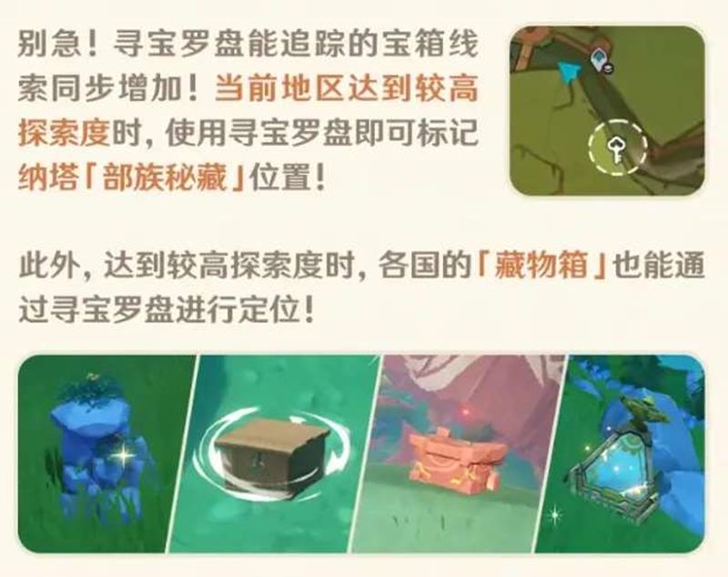 在系统优化方面,5.6版本也带来了不少值得关注的更新。寻宝罗盘的可追踪宝箱类型增加,纳塔的勇士挑战和部族秘藏以及各国的藏物箱都可以进行定位,这对于喜欢探索地图的旅行者来说非常友好。