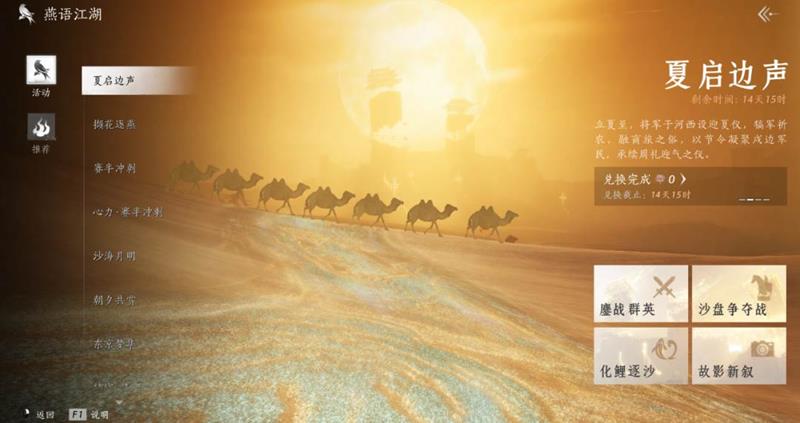 在凉州地图上线前,官方还为侠客们准备了一系列活动和福利。4月30日,全新活动「夏启边声」将开启,侠客们可以参与PVP战斗、御鲤逐沙等玩法,还能体验全新升级的多人嫖姚棋。