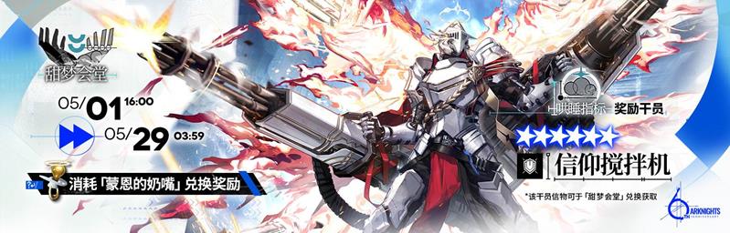 除了活动赠送的信仰搅拌机,本次庆典活动还开启了限定寻访·庆典系列的布道自由寻访。在该寻访中,以下干员的出现率将大幅提升:★★★★★★:新约能天使[限定]、蕾缪安(占6★出率的70%),以及维什戴尔[限定]、塑心[限定]、缪尔赛思[限定](在6★剩余出率30%中以5倍权值出率提升)。此外,累计寻访300次,还可以额外获得限定干员新约能天使一次,但该次获取不产出寻访数据契约。