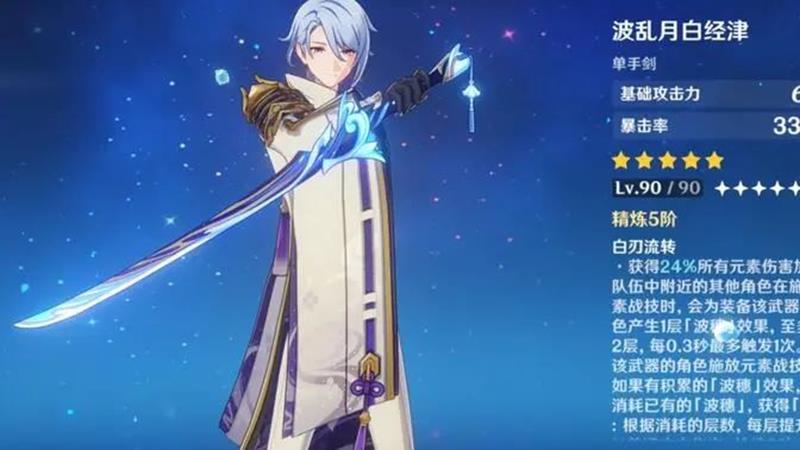 波乱月白经津是神里绫人的专武,泛用性很高。它作为暴击率武器能够提供元素伤害加成,两层武器效果在丝柯克队伍中容易叠满。丝柯克开启元素战技后可一直普攻,武器效果与之相当契合,是专武之下的首选。