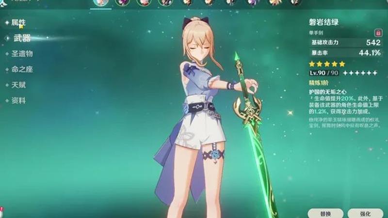 磐岩结绿是单手剑角色的通用武器,可提升角色暴击率。虽然武器效果主要提升角色生命值,但也能获取部分攻击力加成收益,因此也是丝柯克专武之外的一个不错选择。