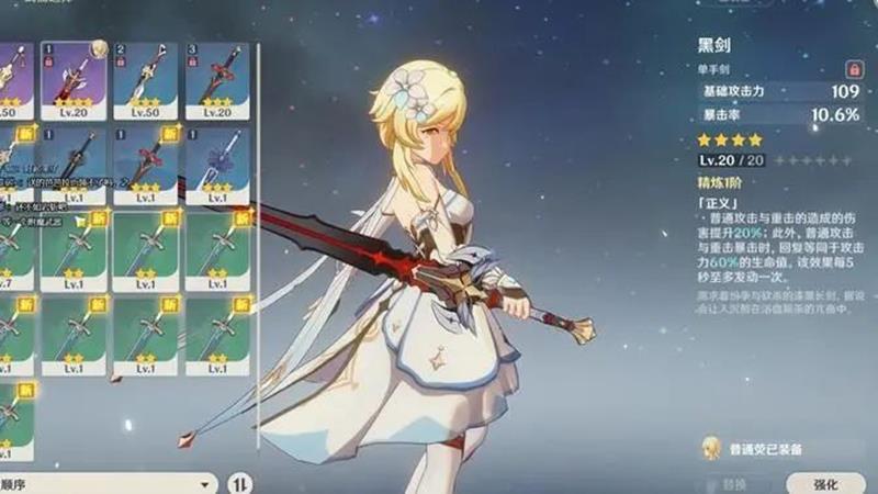 黑剑作为大月卡武器,在满精情况下能提供普通攻击伤害加成并回复角色生命值。丝柯克搭配水神时,黑剑的武器效果方便水神叠层,同时提升自身生存能力,满精黑剑相当实用。