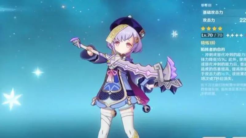 弥坚骨这把单手剑虽然稀有度不高,但强度很高,能提供普通攻击加成。虽然需要冲刺才能获取效果,但丝柯克开启元素战技后可以实现冲刺位移,因此这把武器也很适合丝柯克使用。