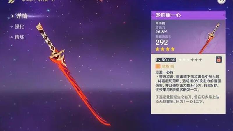 笼钓瓶一心是活动免费武器,满精后可提升角色攻击力并造成范围性物理伤害,虽然冷却时间长,但武器效果也能勉强吃到。