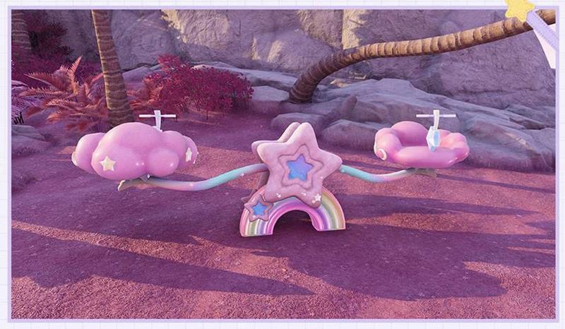 除了双人互动玩法,还有好多可以和同伴一起探索游玩的场景和道具。自在随行载具公司推出的双人转转自行车,让玩家享受与朋友一同骑行的乐趣。心愿跷跷板则是可于星光小铺兑换的双人道具,每一次起伏都是欢声笑语的交织,每一次平衡都是默契与温暖的传递。