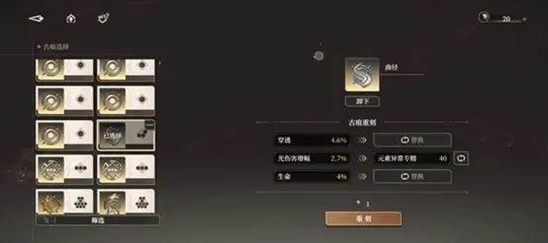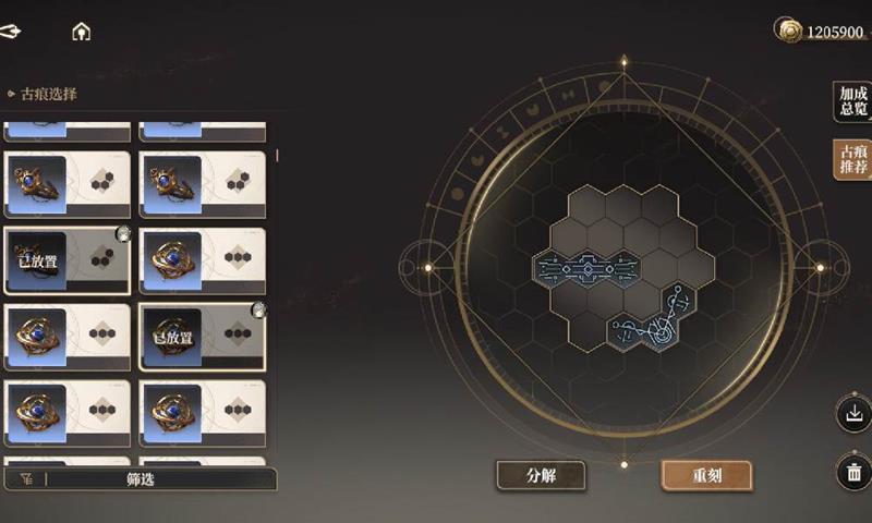 古痕的玩法不仅在于解锁和升级,还在于合理搭配。不同类型的古痕之间存在协同效果,合理搭配可以发挥出更大的作用。例如,攻击型古痕可以与暴击型古痕搭配,提升角色的输出能力;防御型古痕可以与生命值型古痕搭配,增强角色的生存能力。
