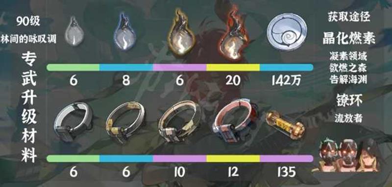技能材料鸢尾盛开之日需要通过挑战周本BOSS芙露德莉斯获取,该BOSS位于黎那汐塔·阿维纽林中间,如果玩家在常规位置未找到,可以尝试切换重力寻找。角色突破材料焚磷厄骨则由BOSS叹息古龙掉落,地点在黎那汐塔·悲叹墓岛。
