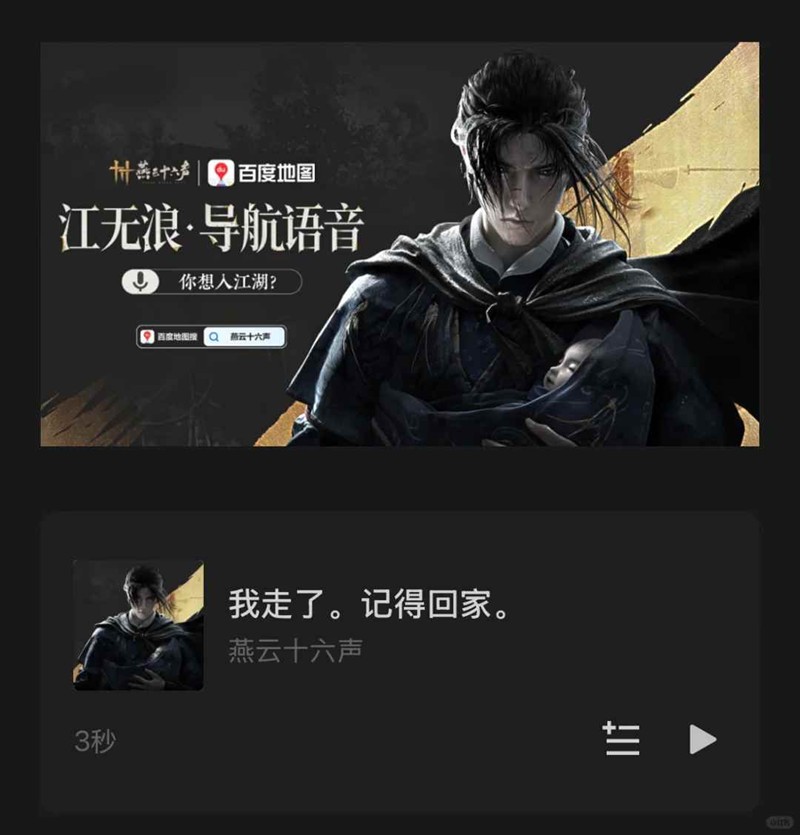 以上就是燕云十六声与百度地图联动上线江无浪江叔导航语音包的全部内容了,更多游戏资讯,攻略内容敬请关注切游网,您的支持是我们努力的动力!