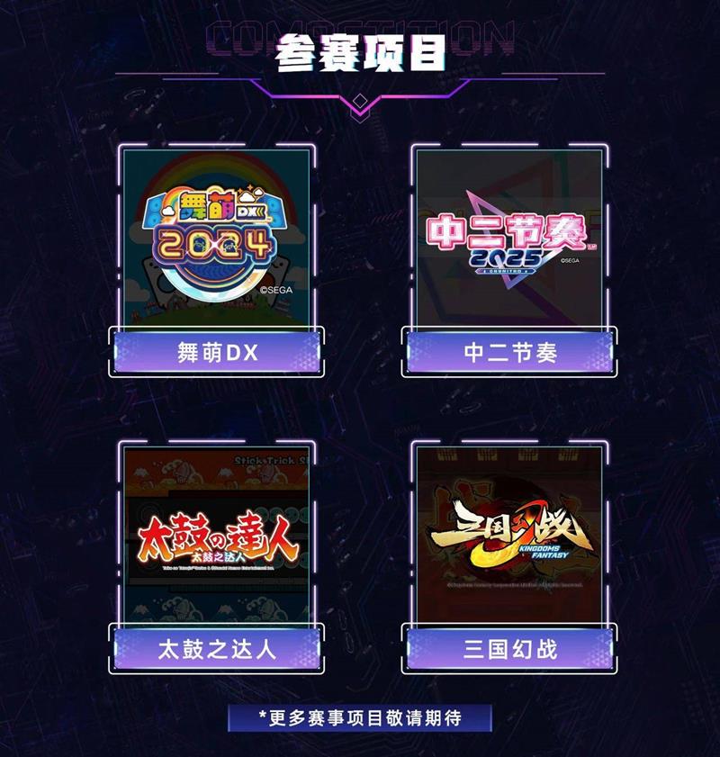 本次大赛涵盖了多个热门街机游戏项目,包括舞萌DX、中二节奏、太鼓之达人和三国幻战等。每个项目都有其独特的魅力和挑战,满足了不同玩家群体的需求。