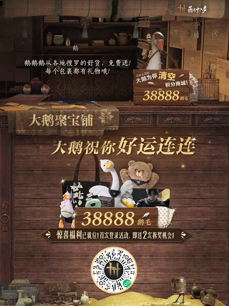 燕云十六声大鹅聚宝铺2.0上线,登录活动即送拆奖机会。