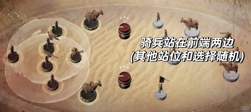 只有骑兵站位是有意义的。力是骑兵和盾兵,骑兵冲阵+盾兵单杀。开局用骑兵冲对方阵容/把对面冲过来的骑兵打回去。