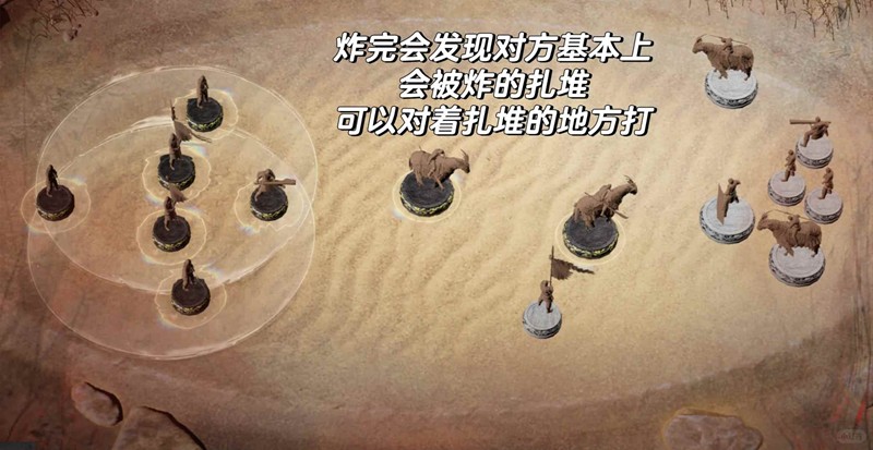 炸完根据炸完的情况来调整和击打。如果有老师不会打沙盘的话,我用这个方法测试过很多遍(人机模式),基本上都能赢。