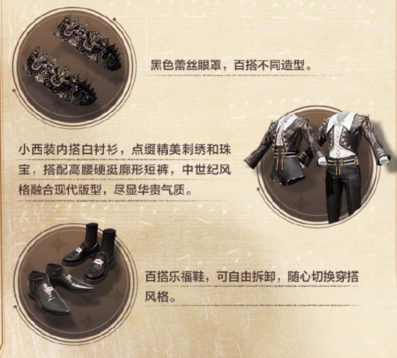 套装包含发型、眼罩、衣服和鞋子,其中黑色蕾丝眼罩成为最大亮点,即便单独搭配其他服饰,也能成为玩家DIY造型中的“王炸”单品。