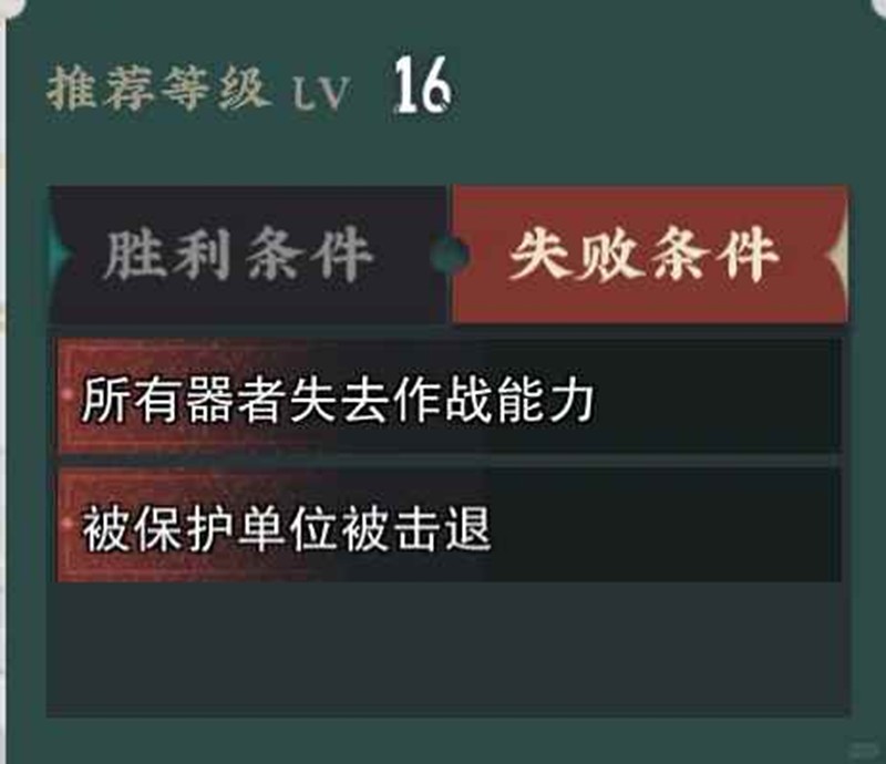 同样是击败所有敌人的胜利条件,但是失败条件被标注“被保护单位被击败”。这种关卡中会出现一个需要保护的对象,保护对象如果死亡那就直接失败了。