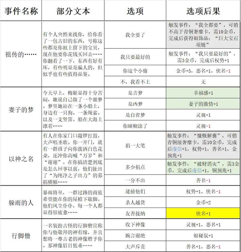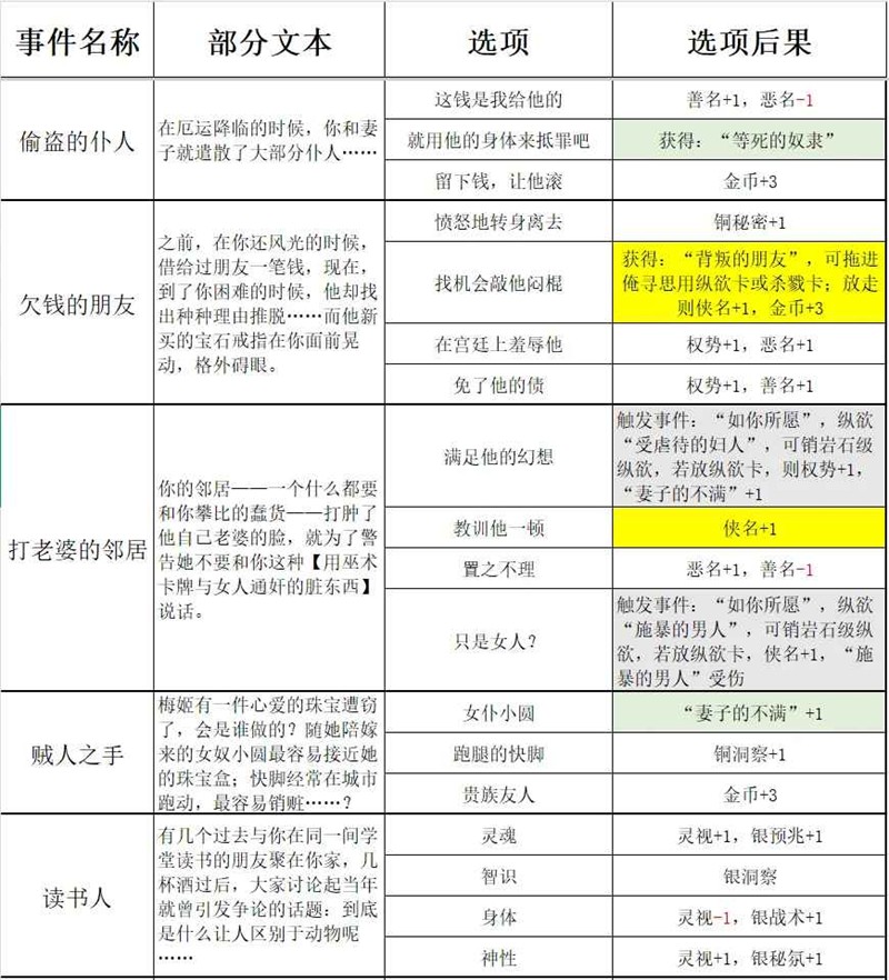 苏丹被神秘女术士蛊惑,命令你和他玩一个残酷的游戏。每周你必须从四种特殊的卡片中抽一张:纵欲卡需要你寻找床笫之欢,奢靡卡需要你挥金如土,征服卡将逼迫你深入险境,而杀戮卡则需要你献祭一条人命……是和这个游戏一同陷入疯狂,还是寻找那缥缈的希望?苏丹的游戏中有过日随机事件选项的触发,那么这些随机事件怎么完成呢?小编为你总结了一份攻略,一起来看看吧~