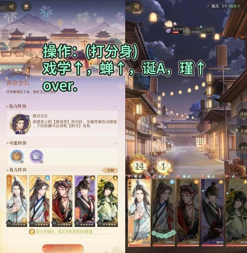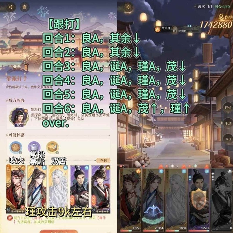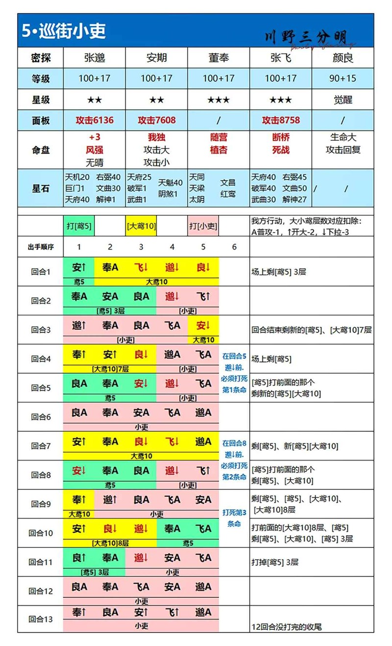 任意输出,对面血量低于80%时,全员普攻 → 直到第一个密探头顶数字大于250 → 全员下拉一次后全力输出