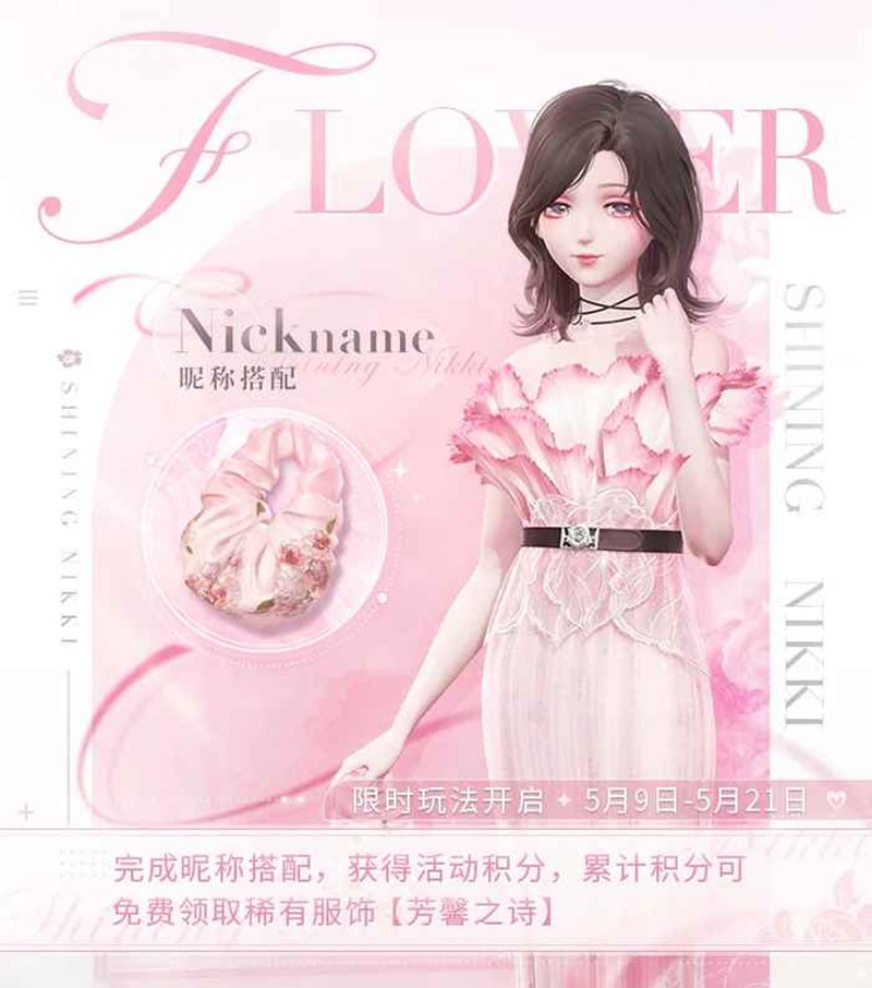5月9日更新后,【昵称搭配】玩法来袭!参与活动可免费获得稀有服饰【芳馨之诗】!