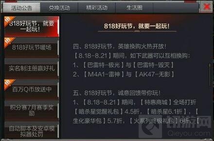答:CF手游8.18好玩节中M4A1雷神和AK47无影就可以互相换购了,小编告诉大家玩腻了手上的武器就去换吧,一定不要错过哦。