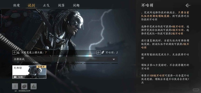 机制是有队友领奖就可以获得不咕羽,咱们直接进16、31试剑侠境刷就好了,一把一分钟内解决!
