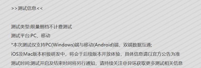官方表示,ios与mac正在开发中,后续也一定会上线,只不过本次测试将不会上线。更多相关内容,切游网会密切关注,为您带来最新内容。敬请期待。