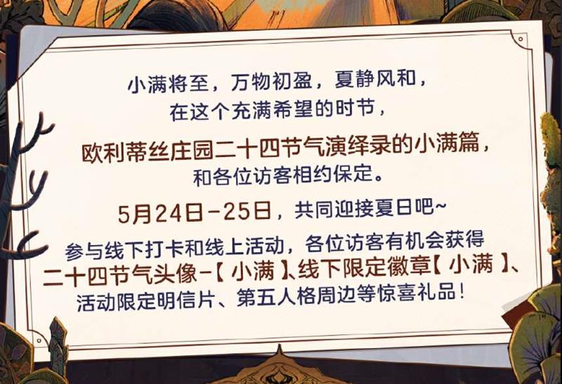 备受期待的《第五人格》欧利蒂丝庄园二十四节气演绎录活动将于5月24日至25日开启。本次线下活动将延续以往的精彩传统,为玩家们带来融合传统文化与游戏元素的独特体验。