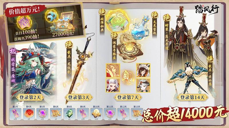 另外,游戏有宗门系统,玩家可创建宗门,率领仙门参与仙界争霸,勾心斗角,合纵连横。游戏还采用跨服同屏争霸的形式,玩家可以与全服玩家同屏对战,5月16日,玩家上线即送100抽,首周更有古宝255抽,器灵135抽,额外赠送27000造化,总价值高达万元。