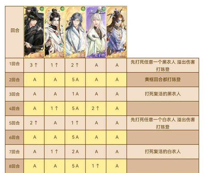 只要在固定回合打死白/黑衣人就行,剩下的伤害都打陈登,不要多打死小兵!!