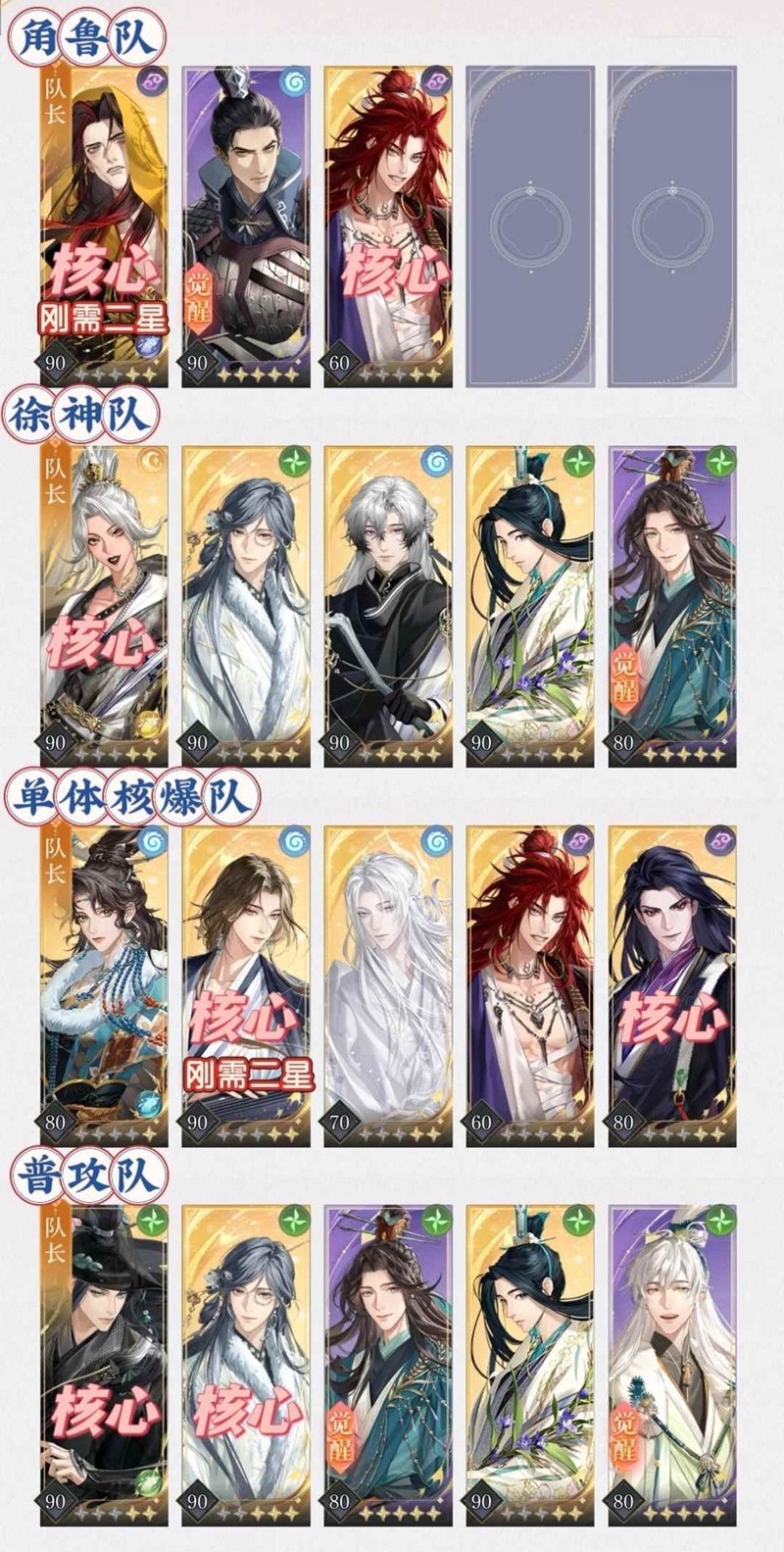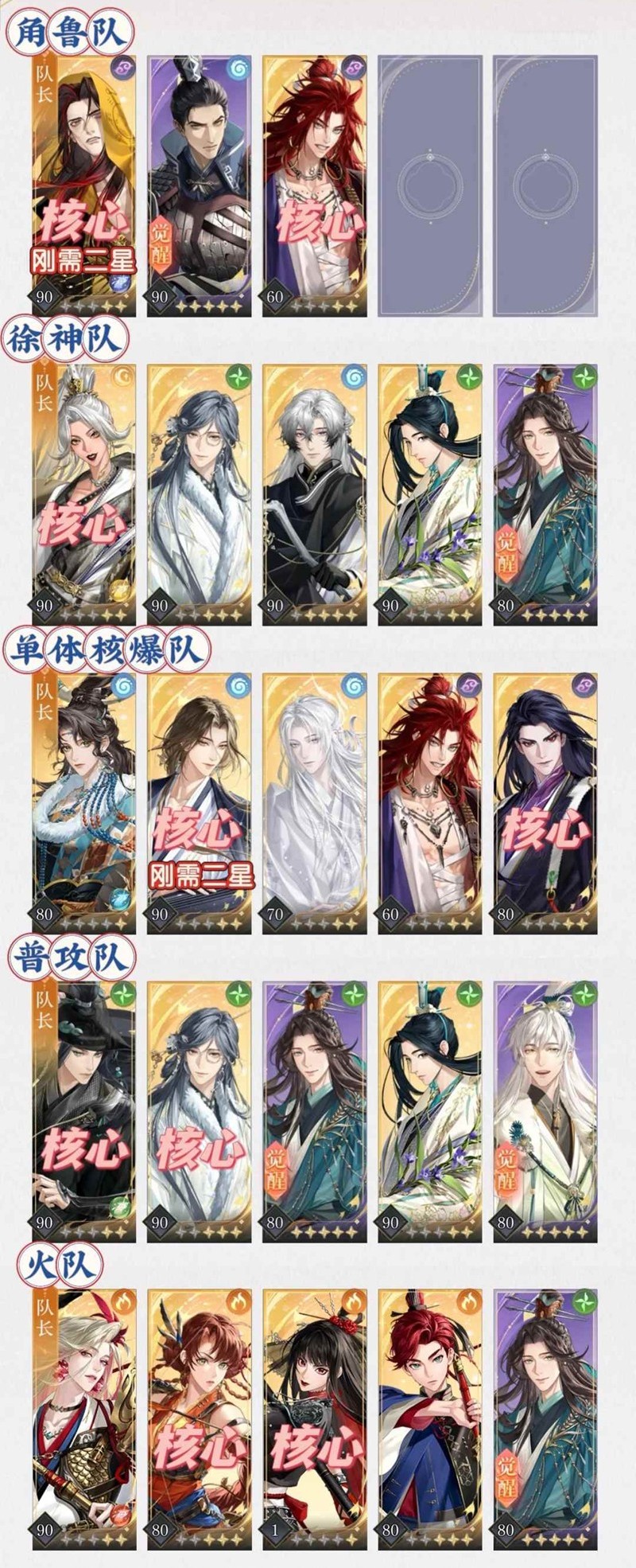 1. 按照配队完整度养,哪个队伍的核心全一点先养哪个队,争取集中资源先拉一队高练出来打关;