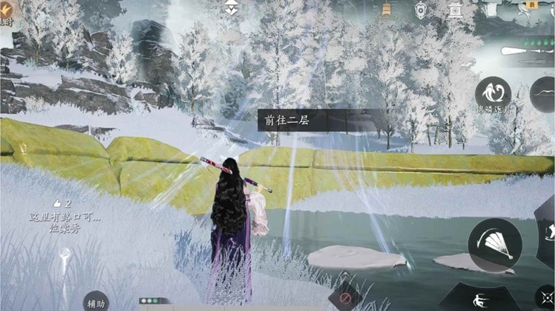 转阶段的时候可以面向她,她旁边有个圈,一般有轻功标志点一下就可以进圈了