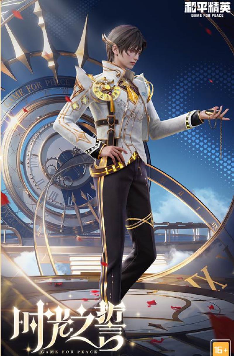 两款角色皮肤都配备了精美的头盔、背包、降落伞和挂件,整体设计围绕着时光主题展开。头盔上的齿轮转动效果栩栩如生,背包像是一个精致的时光宝盒,降落伞展开时如同流动的时间长河。