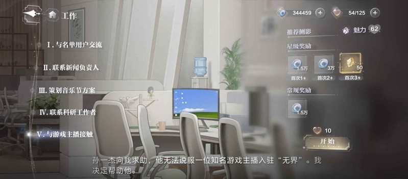 每日工作随着等级的提升,可以选择更难的关卡,同样的体力获得更高的工资,宝宝们不要默认第一关酷酷刷太亏了,而且每个难度首次三星都有时之华奖励。