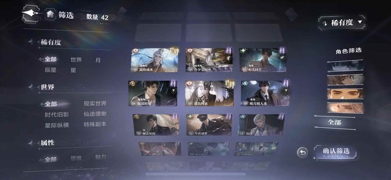 实验小号的截图,新账号除了首抽20的世界卡之外,另外三个男主挑选有叠花的月卡培养,1个男主养1个(重要,这样可以更快的养好)4张卡养好基本够前期的所有剧情了,7天签到送的卡尽量选择叠花或者柏源的深夜时刻。