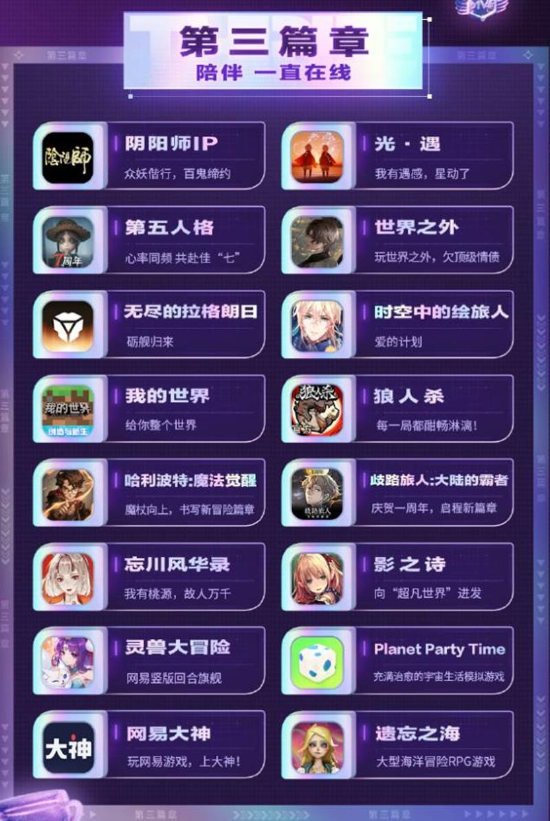 除了新游发布,网易旗下多款热门游戏也将公布最新更新计划。例如,《梦幻西游》电脑版与《驯龙高手》的联动活动已经开启,玩家可以在游戏中体验全新内容。《阴阳师》IP也将带来全新式神、剧情篇章和联动企划。