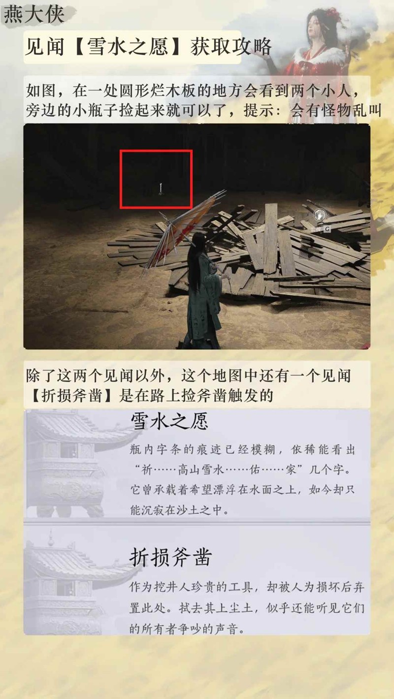 P5:这个地图另外两个见闻获取方式,斧子那个找半天忘了在哪捡的了,欢迎大佬补充