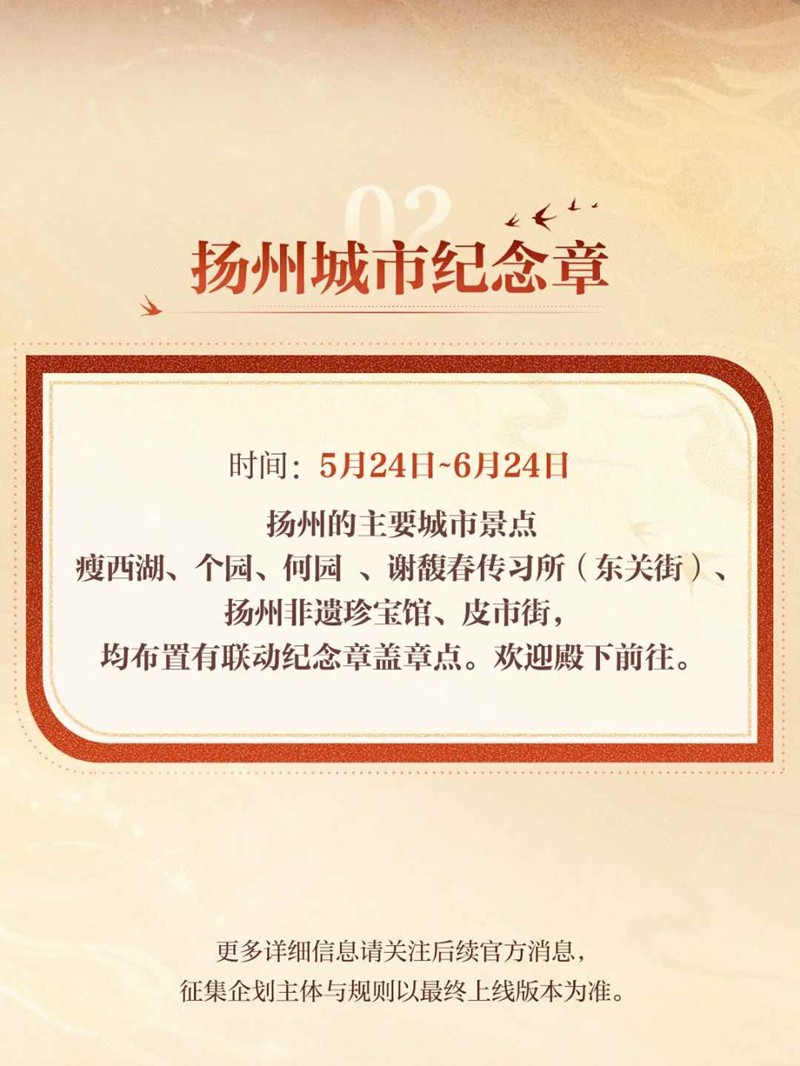 以上就是扬州x如鸢“汉韵游扬州”城市联动预告的全部内容了,更多游戏资讯,攻略内容敬请关注切游网,您的支持是我们努力的动力!