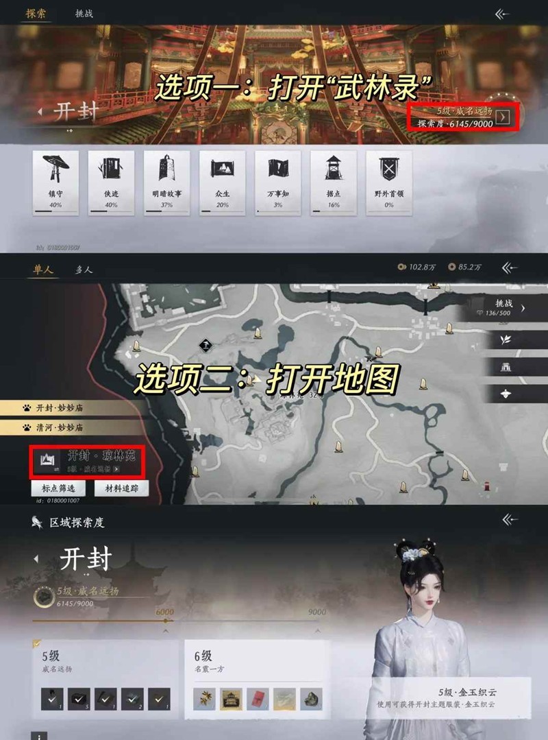 4. 探索度怎么看?打开“武林录”或者左上角小地图(快捷键M) 框起来的地方就是啦