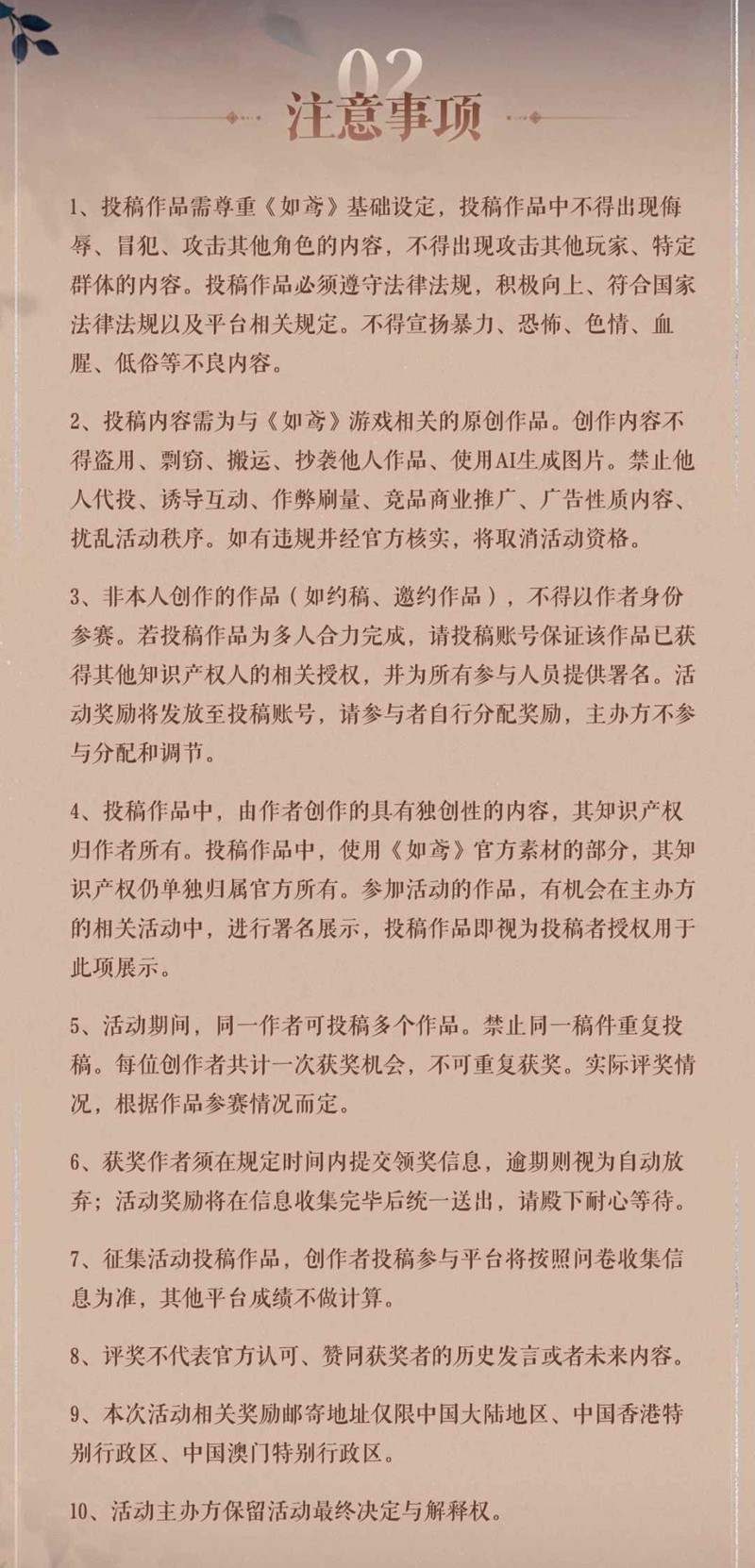 · 参与奖:200白金币+100000五铢钱(所有符合条件的参与作品)