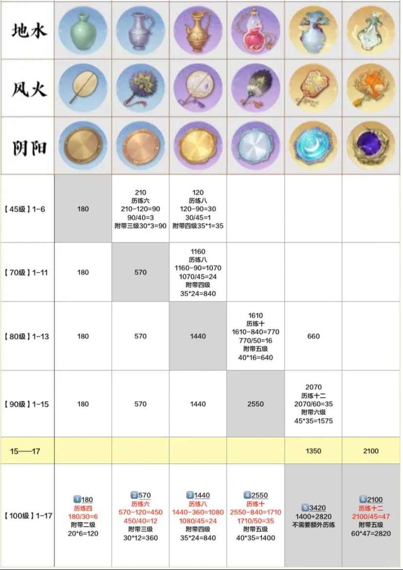 从1-17修为拉满,单单历练十二要打2100/45=47次,还要打历练十,八,四很多次,真的时间上要很久,所以,现在每天拿一些体力刷材料的历练十二