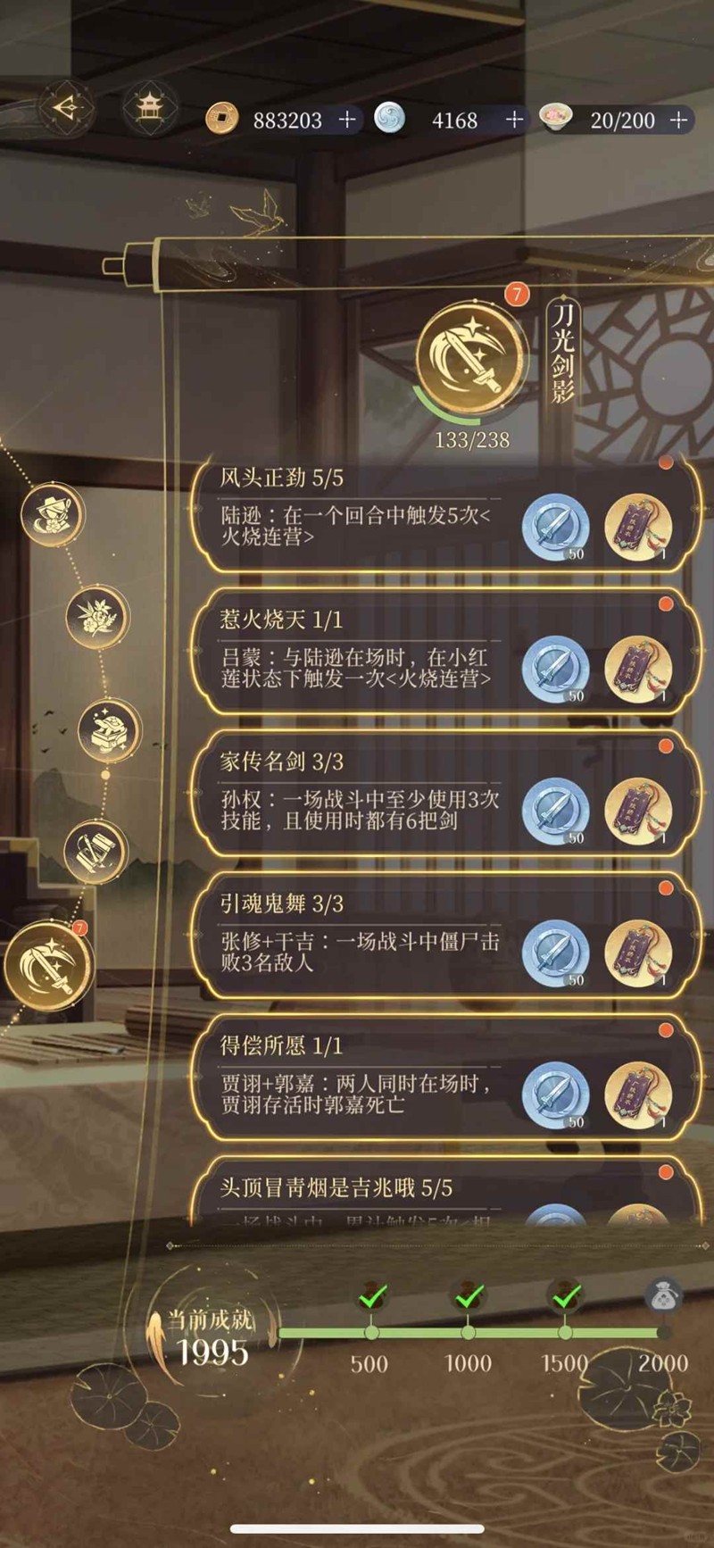 2家传名剑:孙权一场战斗中至少使用三次技能,且使用时都有六把剑