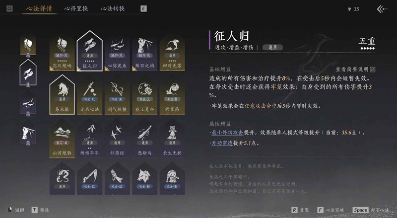 2.征人归! 替换易水歌,8%伤害增幅,心法突破后会增加最小外功跟外功穿透。所以替换易水歌