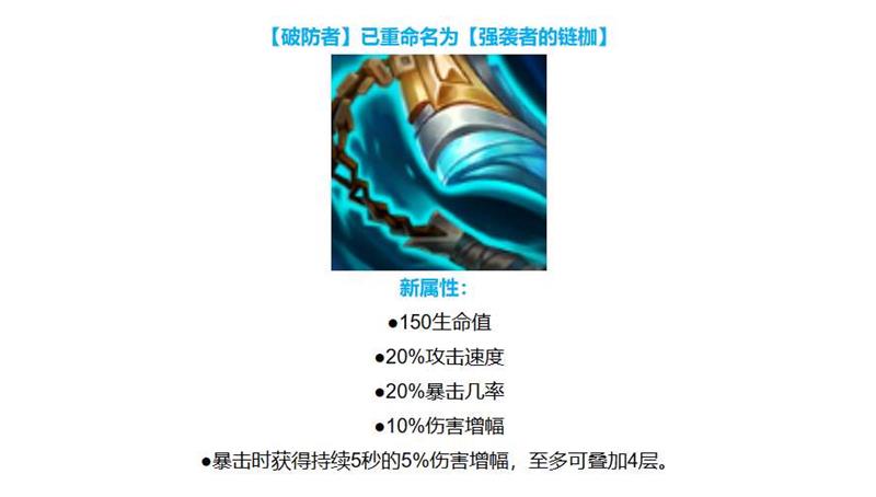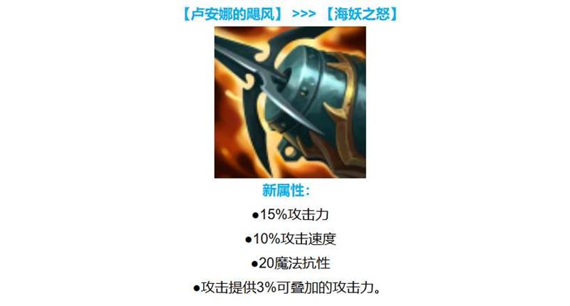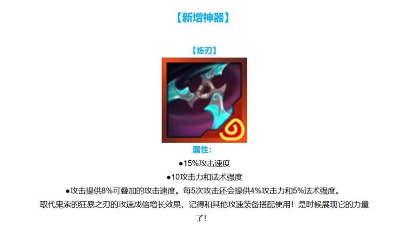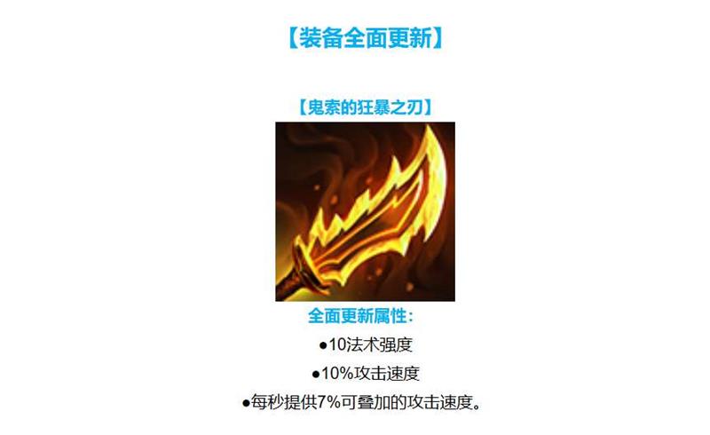 取代鬼索的狂暴之刃的攻速成倍增长效果,记得和其他攻速装备搭配使用!是时候展现它的力量了!