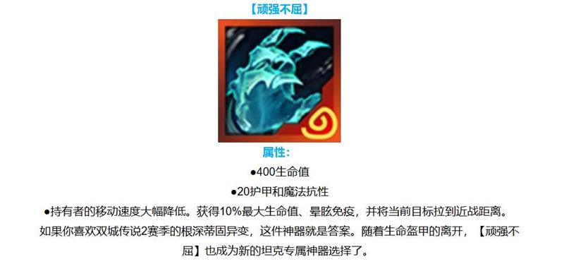 护盾值:在60%生命值时,获得相当于携带者60%最大生命值的护盾值,在6秒内快速衰减。